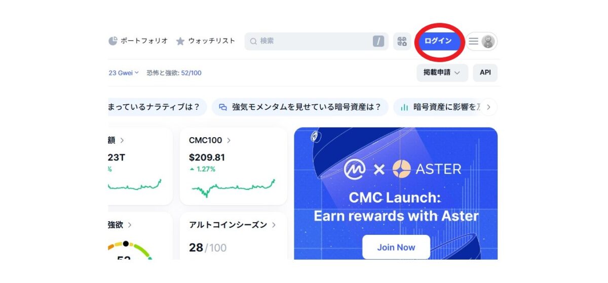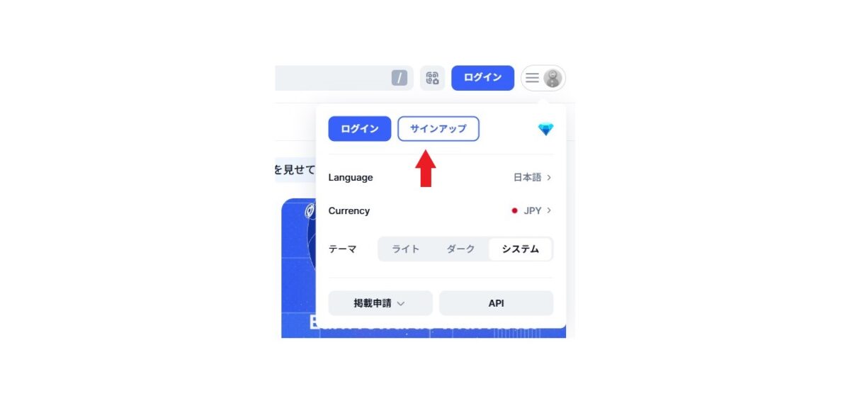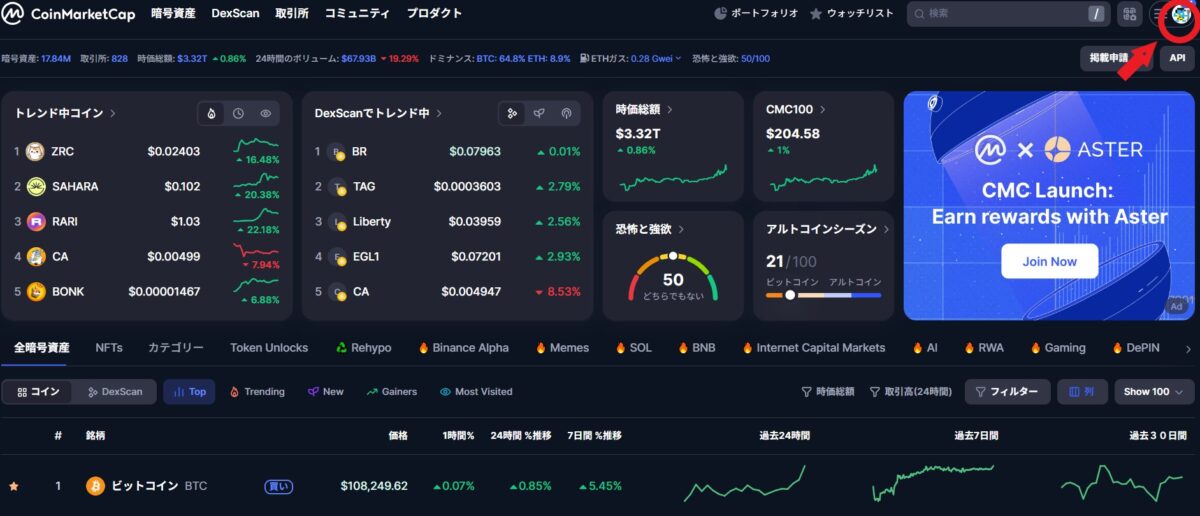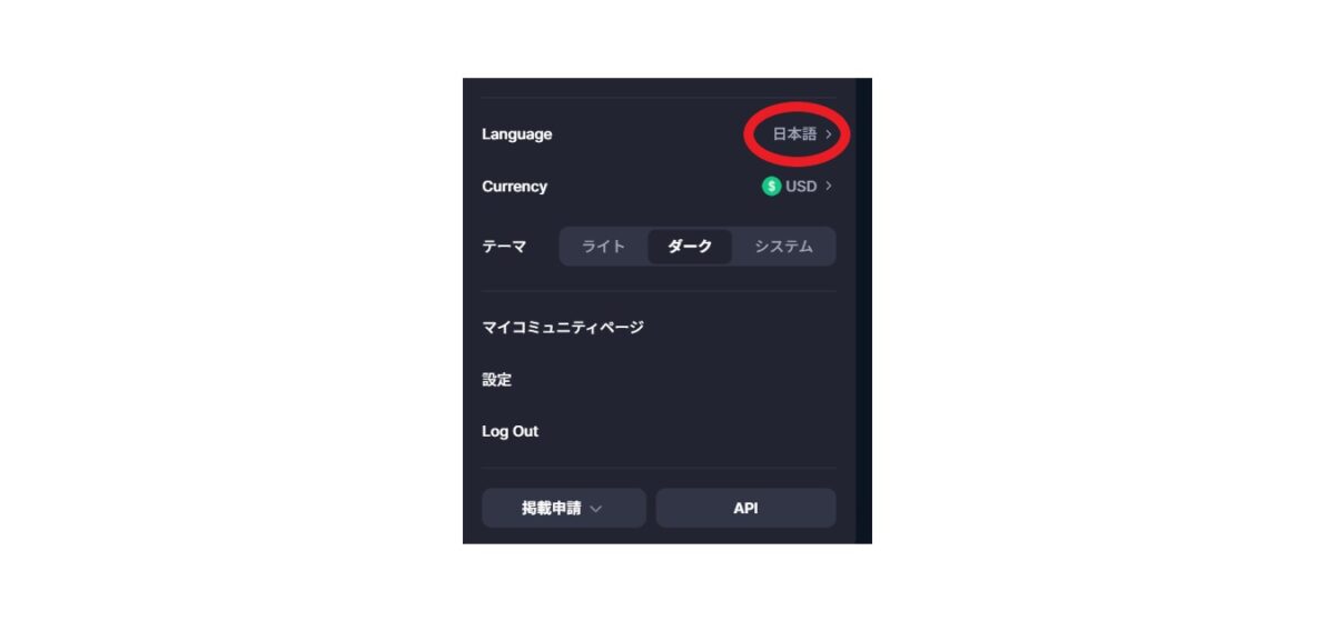 CoinMarketCapで使用するアカウントを作成したら、CoinMarketCapのサイトを日本語読みにします。