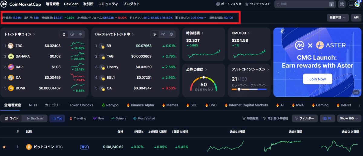 そんなときに役立つのが、**CoinMarketCap(コインマーケットキャップ)**というサイトです。