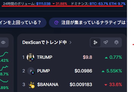 ・出来高/時価総額(24時間):24時間で何%値動きがあったのか