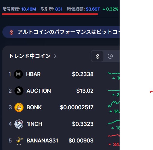取引所:831という数字はCoinMarketCapに掲載されている暗号資産取引所の数です。