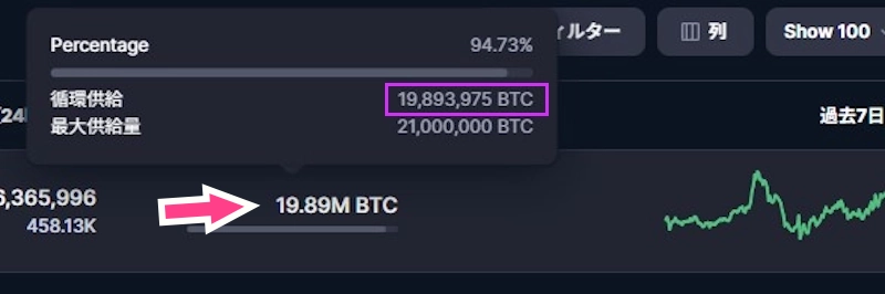 ビットコインの供給量は最大2100万枚と決まっており、2025年7月時点のビットコインは19893975枚市場にでています。